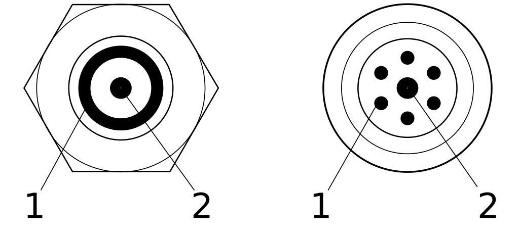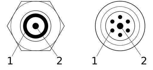 | Keywords: Ring- och sticklågemunstycke.svg gas cutting sv Två typer av munstycken på skärbrännare för gasskärning 1 motsvarar värmelågan och 2 skäroxygenet Till vänster Ringlågemunstycke Till höger Sticklågemunstycke own Moberg 2010-07-30 Cutting tools |