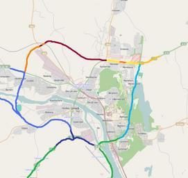 Keywords: Ring road Umea.png sv Översiktskarta över ringledsprojektet i Umeå en Map of the ring road project in Umeå Sweden own Open Street Map Impale 2011-04-03 Cc-zero Maps of Umeå