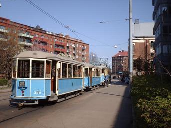 Keywords: Ringlinjen336.jpg sv Lisebergslinjen vid vagnhallen stampgatan Bo Randstedt Danica 2009-04-30 Cc-zero Ringlinjen