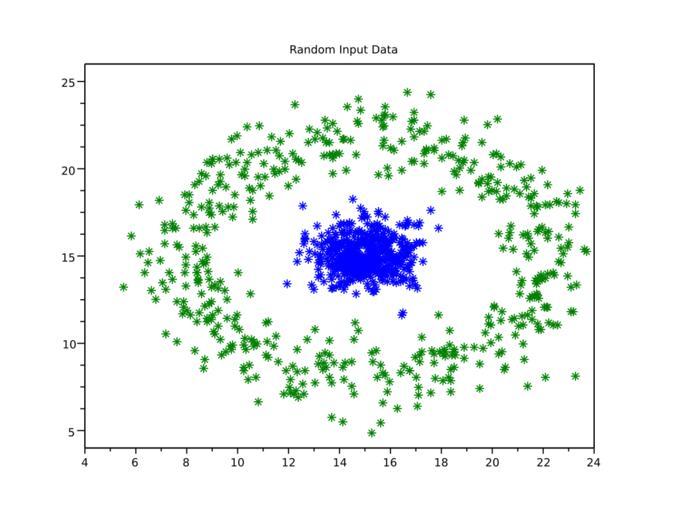Keywords: RingStructure1.svg en An example of random distributions not separable by a linear decision function A circular decision surface is required to separate the distributions Own Anish27 2009-04-29 Machine learning