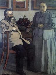 | Keywords: Rippl-Rónai József My Parents after Forty Years of Marriage.jpg Artwork Creator József Rippl-Rónai Fourty Years of Marriage Szüleim negyven évi házasság után 1897 Oil on canvas Size cm 119 156 2 Institution Kiscelli Museum Budapest object history Vásárlás Völgyessy Szomor Sándortól 1968-ban Előtte Fruchter Lajos majd dr Völgyessy Ferenc gyűjteményében bottom left Rónai 97 Nagy Ildikó szerk Rippl-Rónai József gyűjteményes kiállítása A Magyar Nemzeti Galéria kiadványai 1998/1 Budapest 1998 cat no 41 http //muzeum arcanum hu/kiadvanyok Magyar Digitális Múzeumi Könyvtár PD-old-70 Other versions Portrait paintings by József Rippl-Rónai 1897 paintings in Hungary Paintings by József Rippl-Rónai in the Kiscell Museum Portrait paintings in the Kiscell Museum Rippl family |