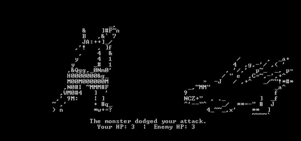 | Keywords: Risen Fan-Made miss.PNG en Screenshot of http //forum worldofplayers de/forum/showthread php t 614233 Risen A Fan-Made Text-Based Video Game showing a battle scene in which the monster dodged the player's attack Own Diego pmc 2009-06-05 ASCII art |