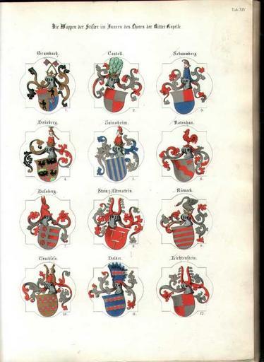 | Keywords: Ritterkapelle Wappen.jpg  Eine Wappentafel aus dem Marianischen Ritter-Album von Carl Alexander Heideloff Ritterkapelle Haßfurt Selbst vom Original gescannt 2004 de wikipedia Kurpfalzbilder de CommonsHelper 2006-02-10 Dark Avenger wikipedia de PD-old original upload log page de wikipedia Ritterkapelle_Wappen jpg 2006-02-10 20 36 Dark Avenger 584×800× 48384 bytes <nowiki>Eine Wappentafel aus dem Marianischen Ritter-Album von Carl Alexander Heideloff Ritterkapelle Haßfurt Selbst vom Original gescannt 2004</nowiki> ImageNote 1 192 277 131 129 584 800 2 Coat of arms of Seinsheim family ImageNoteEnd 1 ImageNote 2 345 579 131 125 584 800 2 Coat of arms of Lichtenstein ImageNoteEnd 2 ImageNote 3 196 125 124 131 584 800 2 Coat of arms of Castell family ImageNoteEnd 3 ImageNote 4 44 431 127 125 584 800 2 Coat of arms of Heßberg family ImageNoteEnd 4 ImageNote 5 347 127 125 127 584 800 2 Coat of arms of Schaumberg family ImageNoteEnd 5 ImageNote 6 345 427 128 127 584 800 2 Coat of arms of Rieneck family ImageNoteEnd 6 ImageNote 7 41 276 128 131 584 800 2 Coat of arms of Henneberg-Schleusingen family ImageNoteEnd 7 ImageNote 8 348 277 124 129 584 800 2 Coat of arms of Rotenhan family ImageNoteEnd 8 ImageNote 9 196 428 125 127 584 800 2 Coat of arms of Altenstein Stein zu Altenstein family ImageNoteEnd 9 ImageNote 10 193 576 125 128 584 800 2 Coat of arms of Dolder family ImageNoteEnd 10 Ritterkapelle Haßfurt Coats of arms of families of Germany Coats of arms of bishops of the Roman Catholic Diocese of Würzburg Coats of arms of Altenstein family Coats of arms of Henneberg-Schleusingen family Coats of arms of Heßberg family Coats of arms of Castell family Coats of arms of Dolder family Coats of arms of Lichtenstein family Franconia Coats of arms of Rieneck family Coats of arms of Rotenhan family Coats of arms of Schaumberg family Coats of arms of Seinsheim family Coats of arms of Truchseß von Wetzhausen family Derivatives of the Coat of arms of Grumbach family |