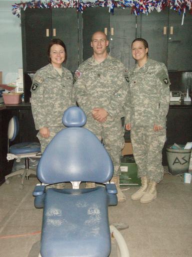 Keywords: Riva Ridge TMC helps Soldiers battle tooth decay, provides lab work DVIDS111949.jpg en From left to right Sgt Tara Phillips a native of Nanih Waiya Miss ; Capt John Batson from Little Rock Ark ; and Spc Jessica Griffin from Mount Pleasant Texas work at the dental clinic at the Riva Ridge Troop Medical Clinic Aug 28 2008 The three all serve with Company C 526th Brigade Support Battalion 2nd Brigade Combat Team 101st Airborne Division Air Assault Multi-National Division “ Baghdad 2008-08-28 https //www dvidshub net/image/111949 111949 2008-08-31 08 34 BAGHDAD IQ PD-USGov 101st Airborne Division Images from DoD uploaded by Fæ |