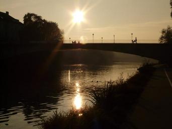 Keywords: river bridge web water sun back light silhouette