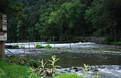 Keywords: river camp lužnice slalom course weir slalom poles current water trees bank river basin south bohemia water slalom