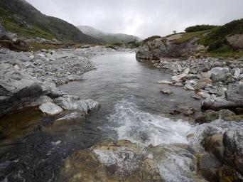 Keywords: river dark flow mountains cloudy pyrenees rocks water flow