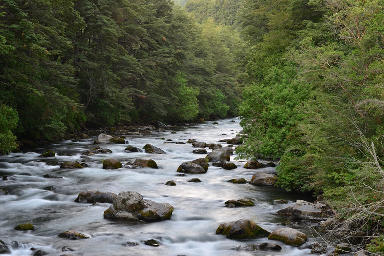 Keywords: river estela water forest nature rocks green chile araucanía mountain river trail of water landscape