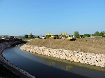 Keywords: river excavator earthmoving revolving machinery levee tracked torrent