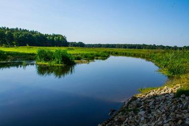 Keywords: river landscape bank reed mecklenburg blue sky water
