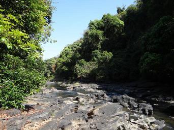 Keywords: river mandovi river bed water flowing mountainous forests thick valley vegetation dense evergreen riverbed rocks rocky boulders scenery scenic picturesque western ghats khanapur belgaum karnataka india