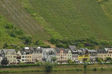 Keywords: river moselle houses grape vineyard wine zell-am-mosel germany