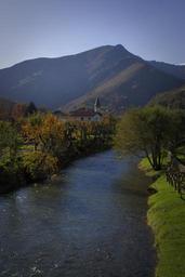Keywords: river mountain landscape nature baigorri water country church
