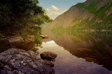 Keywords: river mountains water wood leaves night landscape nature summer season rocks rock