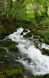 Keywords: river summer mountains water spray river bank shadow green trees pebbles montenegro stream