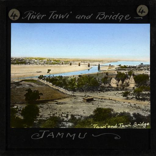 Keywords: River Tawi and Bridge, Jammu, India, ca.1875-ca.1940 (imp-cswc-GB-237-CSWC47-LS10-004).jpg en <br> River Tawi and Bridge Jammu India ca 1875-ca 1940 Photograph of the Tawi bridge crossing Tawi river The Tawi river which flows through the city of Jammu is a tributary of the Chenab river The photograph is taken at a distance from the river and there is a temple to the right of the image ; This belongs to a series of Church of Scotland Foreign Missions Committee lantern slides relating to Jammu City which is also known as the City of Temples A mission station occupied by Church of Scotland missionaries was founded here in the late 19th/early 20th century Jammu is also one of the three administrative divisions within Jammu and Kashmir the northernmost state in India Photographer Unknown Filename imp-cswc-GB-237-CSWC47-LS10-004 tif Coverage date 1875/1940 Part of collection International Mission Photography Archive ca 1860-ca 1960 Geographic subject region Jammu and Kashmir Type images Part of subcollection Photographs from the Centre for the Study of World Christianity University of Edinburgh U K ca 1900-ca 1940s Repository name Centre for the Study of World Christianity Archival file impaunpub_Volume7/1720 url Repository address The University of Edinburgh School of Divinity New College Mound Place Edinburgh EH1 2LX United Kingdom Geographic subject country India Format aacr2 1 lantern slide 8 x 8 cm Geographic subject continent Asia Rights Contact the repository for details Part of series In the Temple City of Jammu LS10 Repository email divinity-CSWC ed ac uk Subject lcsh Keyword waterways Date created 1875/1940 Publisher of the digital version University of Southern California Libraries Subject aat genre distant views Format aat lantern slides Legacy record ID impa-m69216 Access conditions http //www ed ac uk/schools-departments/divinity/research/centres/world-christianity/collections-resources File GB 237 CSWC47/LS10/4 1875/1940 author http //digitallibrary usc edu/cdm/ref/collection/p15799coll123/id/64838 PD-old-70-1923 Magic lantern images Images from USC Digital Library uploaded by Fæ International Mission Photography Archive ca 1860-ca 1960 Tawi River |