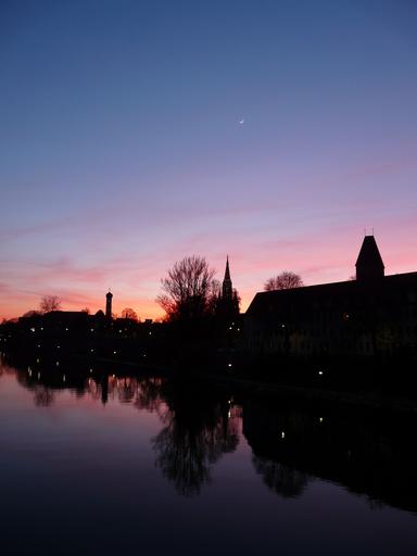 Keywords: river water city sunset romance moon mystical silhouette abendstimmung mood atmosphere sky