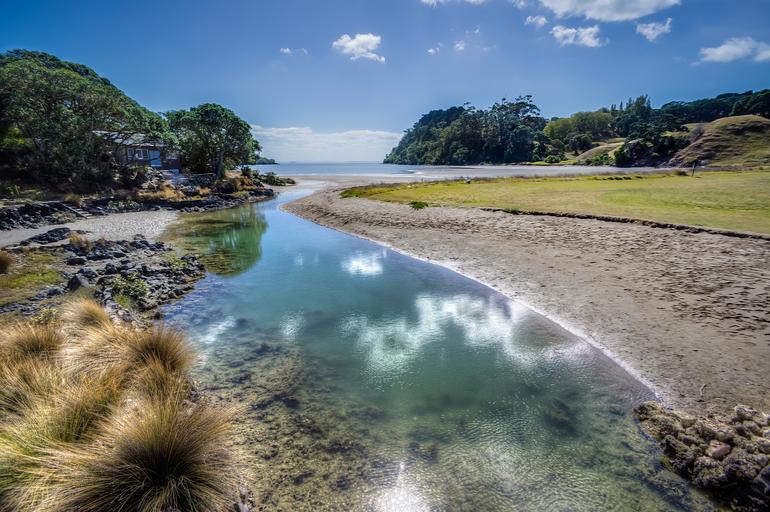 Keywords: river water inlet glassy calm reflection clear fresh hut shed escape nature cove bay beach transparent vegetation summer holiday stay mirror tranquil scene peaceful