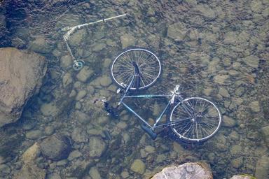 Keywords: river water wheel scooter disposed of roller waste pollution environmental protection contamination throw away society thrown away