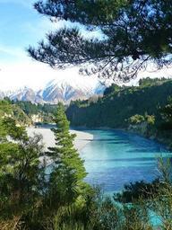 Keywords: river winding trees landscape nature sky scenic blue view water clouds outdoors vegetation mountains valley summer forest green bend stream skyline picturesque new zealand