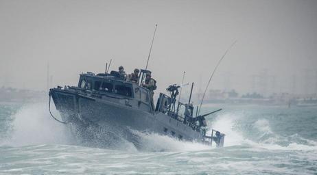 Keywords: Riverine Command Boat 805 Commander Task Group56.7 transits rough seas patrol operations Arabian Gulf.