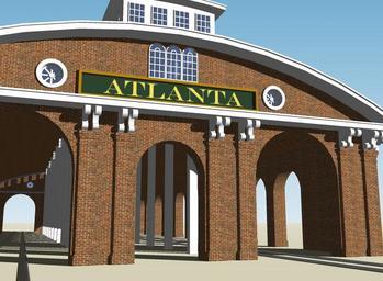 | Keywords: RKO backlot Atlanta railroad depot from Gone With The Wind - alt angle.jpg Other views <gallery> Image RKO backlot Atlanta railway depot from Gone With The Wind jpg </gallery> 2D image exported from a 3D model of a variant of a movie set exterior that once existed until 1976 on the now demolished RKO Studios Forty Acres backlot in Culver City California The model depicts the Atlanta railroad depot as it appeared in the 1939 cinema classic Gone with the Wind The set as constructed was a slightly downsized version as is the 3D model of the actual depot and it was featured prominently in scenes that dramatized events leading to the fall of Atlanta in that film The backlot movie set was an incomplete structure with roofing only on the side which was filmed and with a painted facade simulating the windowed structure along the roofline Own 2008-05 Kipp Teague Gone with the Wind film Film sets RKO Studios Architectural drawings by SketchUp |