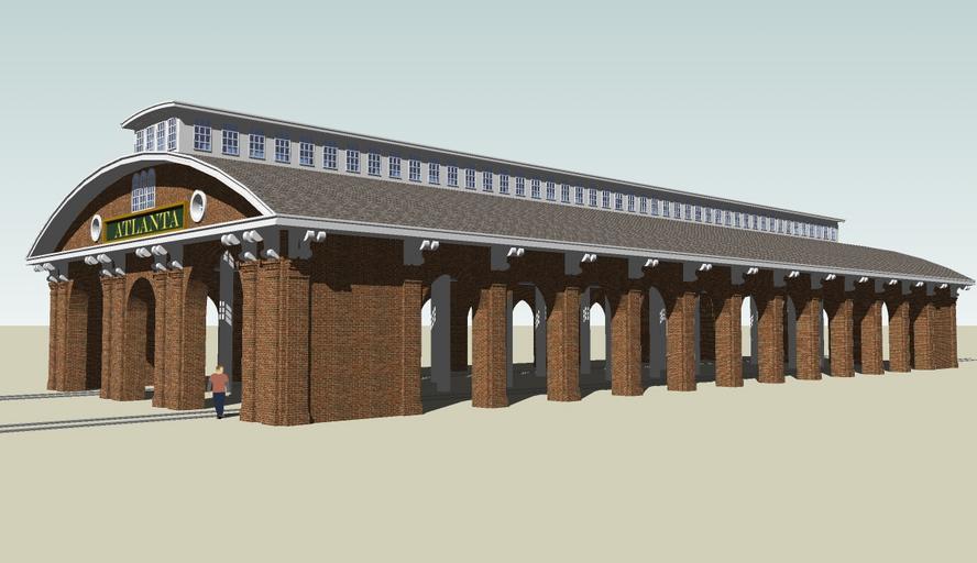 Keywords: RKO backlot Atlanta railway depot from Gone With The Wind.jpg Other views <gallery> Image RKO backlot Atlanta railroad depot from Gone With The Wind - alt angle jpg </gallery> 2D image exported from a 3D model of a variant of a movie set exterior that once existed until 1976 on the now demolished RKO Studios Forty Acres backlot in Culver City California The model depicts the Atlanta railroad depot as it appeared in the 1939 cinema classic <i>Gone with the Wind</i> The set as constructed was a slightly downsized version as is the 3D model of the actual depot and it was featured prominently in scenes that dramatized events leading to the fall of Atlanta in that film The backlot movie set was an incomplete structure with roofing only on the side which was filmed and with a painted facade simulating the windowed structure along the roofline self-made in Google Sketchup 6 0 2008-05 Kipp Teague Film sets RKO Studios Architectural drawings by SketchUp Gone with the Wind film |