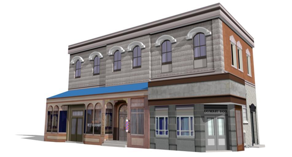| Keywords: RKO backlot cafe bank.jpg Other views <gallery> Image RKO backlot Mayberry bank jpg </gallery> 2D image exported from a 3D model of a building that once existed until 1976 on the now demolished RKO Studios backlot called Forty Acres Typical of most sets on a film backlot this structure was ostensibly a facade only with no practical roof or interior The building was used as a film set and appeared on television's The Andy Griffith Show as the Mayberry Bank It was first seen in the 1939 cinema classic Gone with the Wind as the National Hotel in a dramatic scene that witnesses the Siege of Atlanta; and again in the 1949 film noir classic The Set-Up as the Ringside Cafe It also appeared on Star Trek's episode of The City on the Edge of Forever in which Dr McCoy is seen walking in front of Walt's Restaurant before crossing to the 21st Street Mission situated on the north side of the street self made designed in Google Sketchup 6 0 2008-02 Bill Wrigley Film sets RKO Studios Architectural drawings by SketchUp Architectural 3D drawings Star Trek The Original Series CAAD |