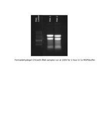 | Keywords: RNA agarose gel.svg en Agarose Gel of RNA separation highlightins the 28S and 18S subunits own RNA405 2009-03-31 Check categories 2009 April 4 en wikipedia Northern_blot 2 Laboratory techniques Molecular biology Northern blot Agarose gel electrophoresis |