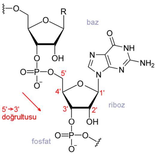 | Keywords: RNA chemical structure tr.PNG en Diagram to illustrate 5' to 3' directionality in a nucleic acid shown here in an RNA structure text in Turkish Modified from Image RNA chemical structure GIF tr Bir nükleik asitte burda bir RNA molekülü içinde 5' to 3' doğrultusunun gösterimi Image RNA chemical structure GIF resminden Türkçeleştirilmiştir own 2008-01-31 InfoCan Public domain Image RNA chemical structure GIF RNA | ||||