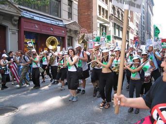 | Keywords: RNC NYC A29 marching band.jpg Originally uploaded to the English Wikipedia by NTK on November 21 2004 The original description was as follows Radical drum corps and marching bands such as the Rude Mechanical Orchestra shown here were a common sight in the August 29 2004 march against the RNC in NYC I took this picture and release it into the public domain en English Wikipedia NTK Marching bands 2004 Republican National Convention protest activity | ||||