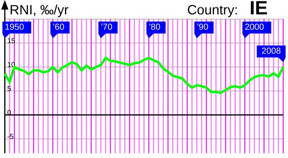| Keywords: RNI 1950 IE.svg en The w Rate of natural increase in Ireland - Éire 1950 “2008 own Incnis Mrsi 2009-07-13 public domain Image BirthDeath 1950 IE svg This graph visualize the difference between a birth ratehttp //demoscope ru/weekly/ias/ias05 php tim 0 cou 12 terr 1 ind 26 Submit OK and a death ratehttp //demoscope ru/weekly/ias/ias05 php tim 0 cou 12 terr 1 ind 1 Submit OK and nothing more All disclaimers from Image BirthDeath 1950 IE svg apply also to this image Temporal population graphs of Ireland Rates of natural increase |