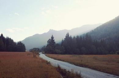 Keywords: road away landscape mountains hiking grasses trail leisure nature summer idyllic rock sky sunny beautiful tree cloud more idyll