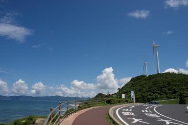 Keywords: road blue sky wind turbine journey landscape route sunny travel trip way summer nobody nature