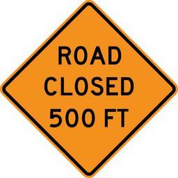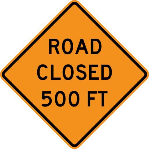 | Keywords: Road Closed 500 Feet sign.svg User Ltljltlj/Template 900 mm by 900 mm 36 in by 36 in Road Closed 500 Feet sign made to the specifications of the http //mutcd fhwa dot gov/SHSm/warning pdf 2004 edition of Standard Highway Signs sign W20-3 Uses the http //www triskele com/fonts/index html Roadgeek 2005 fonts United States law does not permit the copyrighting of typeface designs and the fonts are meant to be copies of a U S Government-produced work anyway Colors are from http //mutcd fhwa dot gov/kno-colorspec htm Pantone Orange 152 converted to RGB by http //www reeddesign co uk/test/pantone2rgb html W20-3 W20-3 - Road Street Closed with distance SVG road signs in the USA 500 number |