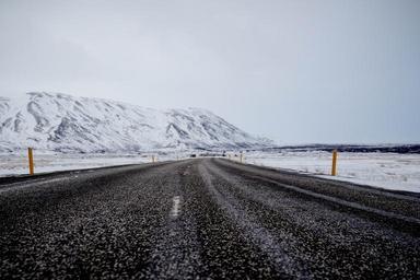 Keywords: road highway asphalt drive journey destination mountain snow winter sky horizon landscape freeway route trip speedway transportation way