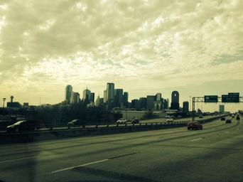 Keywords: road highway evening dusk city travel cityscape skyline downtown america usa