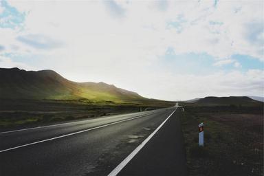 Keywords: road highway pavement mountains hills grass rural sky clouds