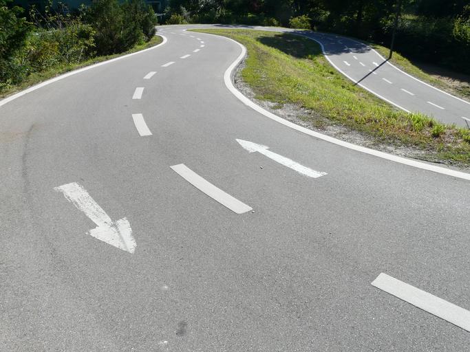 Keywords: road lane traces road markings return turn loop direction directions tar asphalt traffic drive central reservation