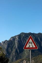 Keywords: road sign attention fling street sign traffic sign warning auto danger point mountains