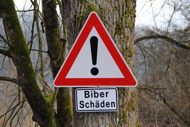 Keywords: road sign beaver damage tree in nauen inn bavaria