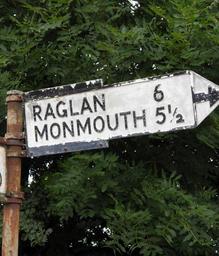 Keywords: road sign directions vintage road sign post signpost guidepost sign post destination drive monmouth raglan wales miles