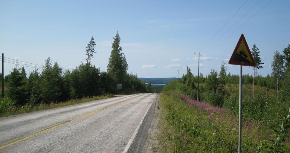 Keywords: road the steep downhill warning finnish summer appears in the far high up in the