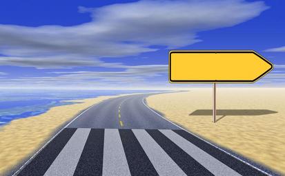 Keywords: road zebra crossing transition arrow show direction right next road sign traffic sign away decision alternative selection option chance choice another way