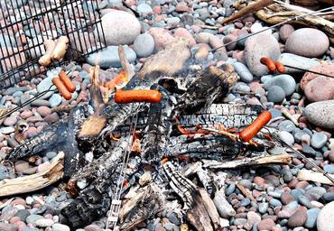 Keywords: roast bbq bonfire beach picnic cook bratwurst ember summer outdoor heat meat wood lunch flame sausage fire driftwood smoke campfire