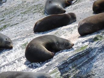 Keywords: robbe animal seal meeresbewohner mammal animal world nature seal colony lazing around sun posing group creature new zealand