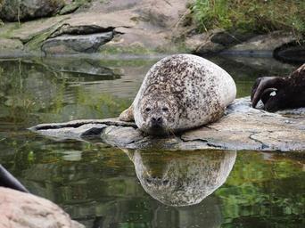 Keywords: robbe seal mirroring nature doze posing zoo mammal lazing around water