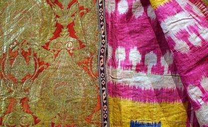 | Keywords: Robe, Uzbekistan, Bukhara, late 1800s AD, silk, metal-wrapped silk, view 2 - Textile Museum, George Washington University - DSC09909.JPG en Exhibit in the Textile Museum George Washington University Washington DC USA Photography was permitted in the museum without restriction This work is old enough so that it is in the public domain 2015-03-26 16 08 12 own Daderot other versions PD-old-70 cc-zero Collections of the Textile Museum George Washington University Traditional clothes of Uzbekistan |