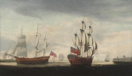 | Keywords: Robert Dodd (attr.) - A three-masted merchantman in two positions off Tynemouth.jpg Attributed to oil canvas cm 63 5 106 7 accession number object history credit line exhibition history christies online 5204067 5887 808 London 13 May 2009 PD-old-100 DEFAULTSORT Dodd Robert; Merchantman in two positions; Christie's 2009 Robert Dodd Sailing ships of the United Kingdom 18th-century sailing ships in paintings | ||||