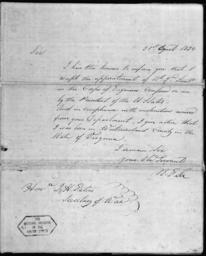| Keywords: Robert E. Lee's Acceptance of the Appointment of Brevet 2nd Lieutenant in the Army Corps of Engineers - NARA - 300371.tif Scope and content Robert E Lee began his military career in the U S Army With this document Lee accepted his first military commission upon graduation from the U S Military Academy at West Point in 1829 General notes Exhibit History American Originals December 1995 - June 1996 National Archives Rotunda Washington DC Exhibit No 624 0019 300371 Local identifier War Department The Adjutant General's Office 03/04/1907 - 09/18/1947 Archives I Reference Section Textual Archives Services Division NWCT1R National Archives Building 7th and Pennsylvania Avenue NW Washington DC 20408 1829-08-21 Record group Record Group 94 Records of the Adjutant General's Office 1762 - 1984 Record group ARC 423 Letters Received compiled 1805 - 1889 Series ARC 300368 File unit File unit ARC Variant control numbers NAIL Control Number NWCTB-94-CORRPI17E12-L60 1829 <br /> NAIL Control Number NWDT1-94-CORR-PI17E12-L60 1829 yes Other versions <gallery> File Robert_E _Lee's_Acceptance_of_the_Appointment_of_Brevet_2nd_Lieutenant_in_the_Army_Corps_of_Engineers_-_NARA_-_300371 tif tif File Robert_E _Lee's_Acceptance_of_the_Appointment_of_Brevet_2nd_Lieutenant_in_the_Army_Corps_of_Engineers_-_NARA_-_300371 jpg jpg </gallery> NARA-cooperation PD-USGov 1829 letters Robert Edward Lee United States Army Corps of Engineers NARA TIF images with categorized JPGs |